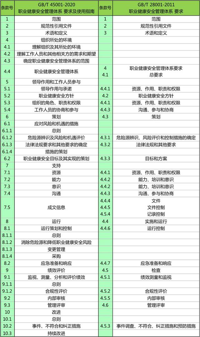 ▲ GB/T 45001-2020與GB/T 28001-2011的對應關(guān)系